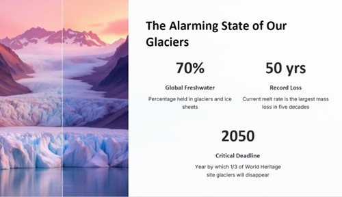 The inaugural “First World Day for Glaciers: Planning Toward the 5th International Polar Year (IPY-5) 2032-2033”  webinar brought together global experts to address the critical challenges of glacier loss.